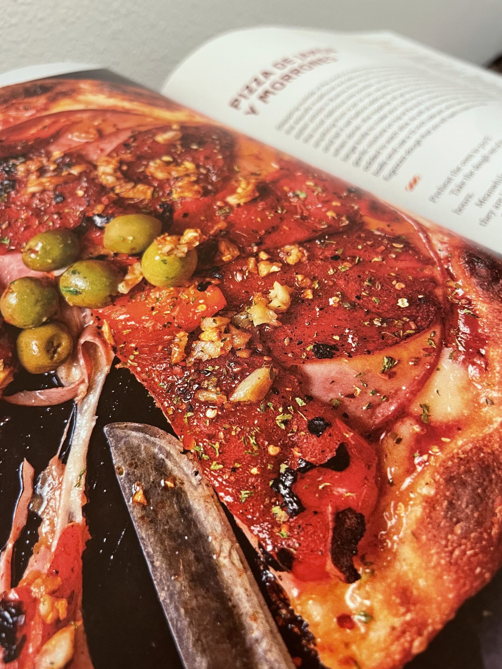 Experience the bold, rustic flavors of Spain and Italy in this delicious artisan pizza topped with thinly sliced jamon (ham) and roasted red bell peppers (morrones). The smoky sweet peppers, green olives, and roasted garlic complement the savory cured ham, layered over a hand-stretched crust brushed with olive oil. The dough will be made with sourdough in the Argentinian Style.